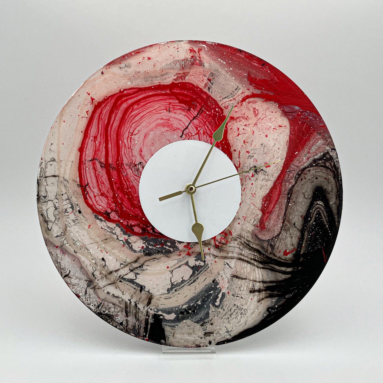 Diese Schallplattenuhr ist ein absolutes Unikat. Die Schallplattenuhr besticht durch ihr Muster und die damit verbundenen Farben. Die handgefertigte Uhr aus Vinyl stammt aus der Vinyl Manufaktur, welche für hochwertige Schallplattenveredelungen steht. Die Schallplattenuhren werden exklusiv über Schallplattenliebe.de angeboten.